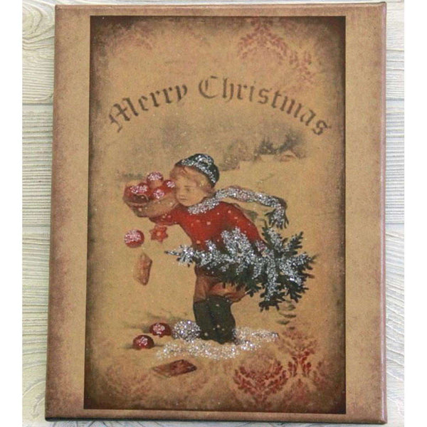 An aged canvas print of a vintage postcard design finished with a touch of glitter....