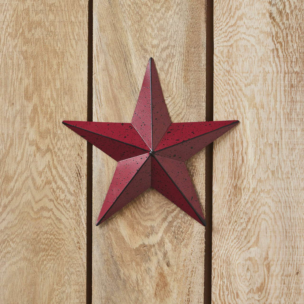 Crafted from durable metal, this wall hanging features a star shape and a rich burgundy speckled finish, infusing your space with a touch of country charm. The American star design, coupled with a distressed appearance, creates a rustic and timeless aesthetic, making it an ideal accent for the bathroom, bedroom, dining room, entryway, kitchen, or living room. The burgundy hue of this metal wall hanging adds a primitive and stylish touch, seamlessly blending with various interior styles. Looks great paired with other sizes and colours.