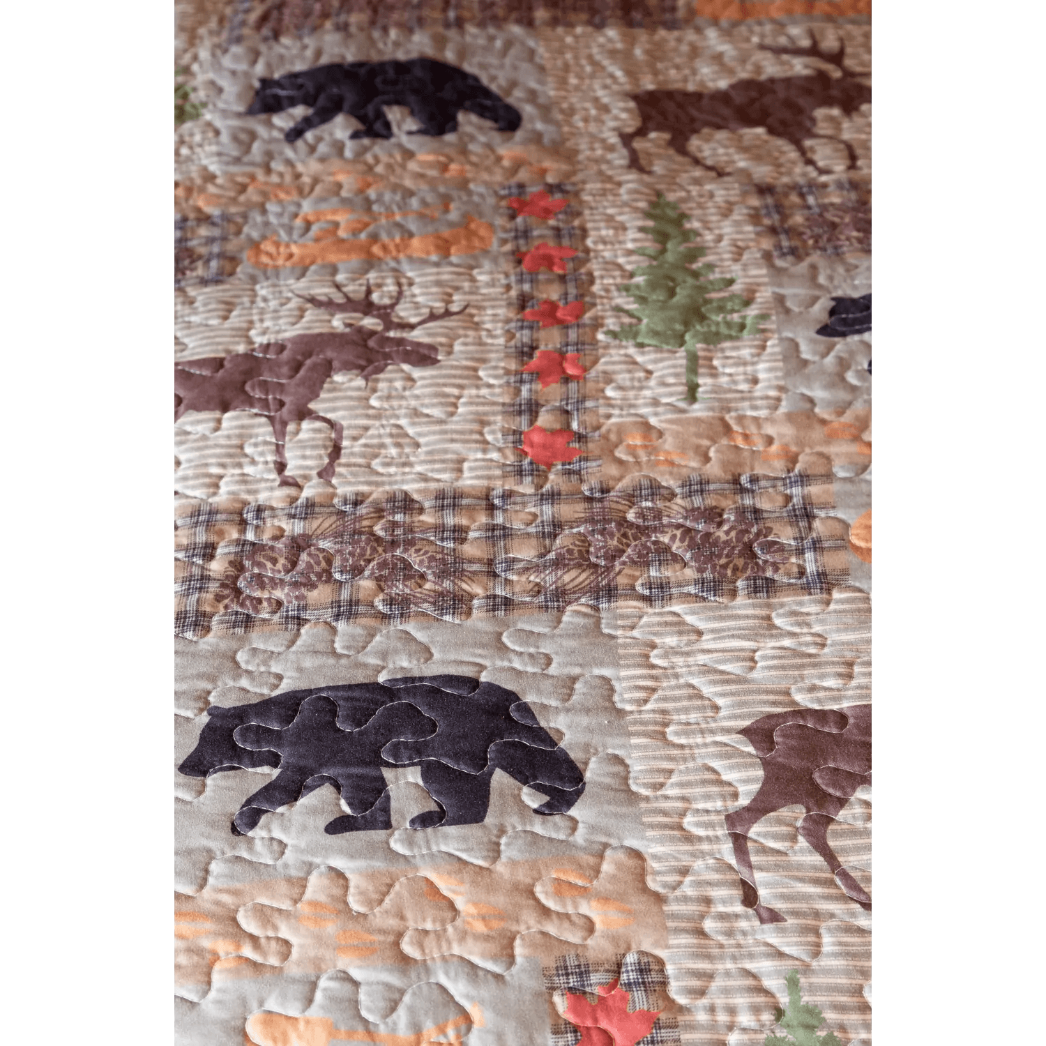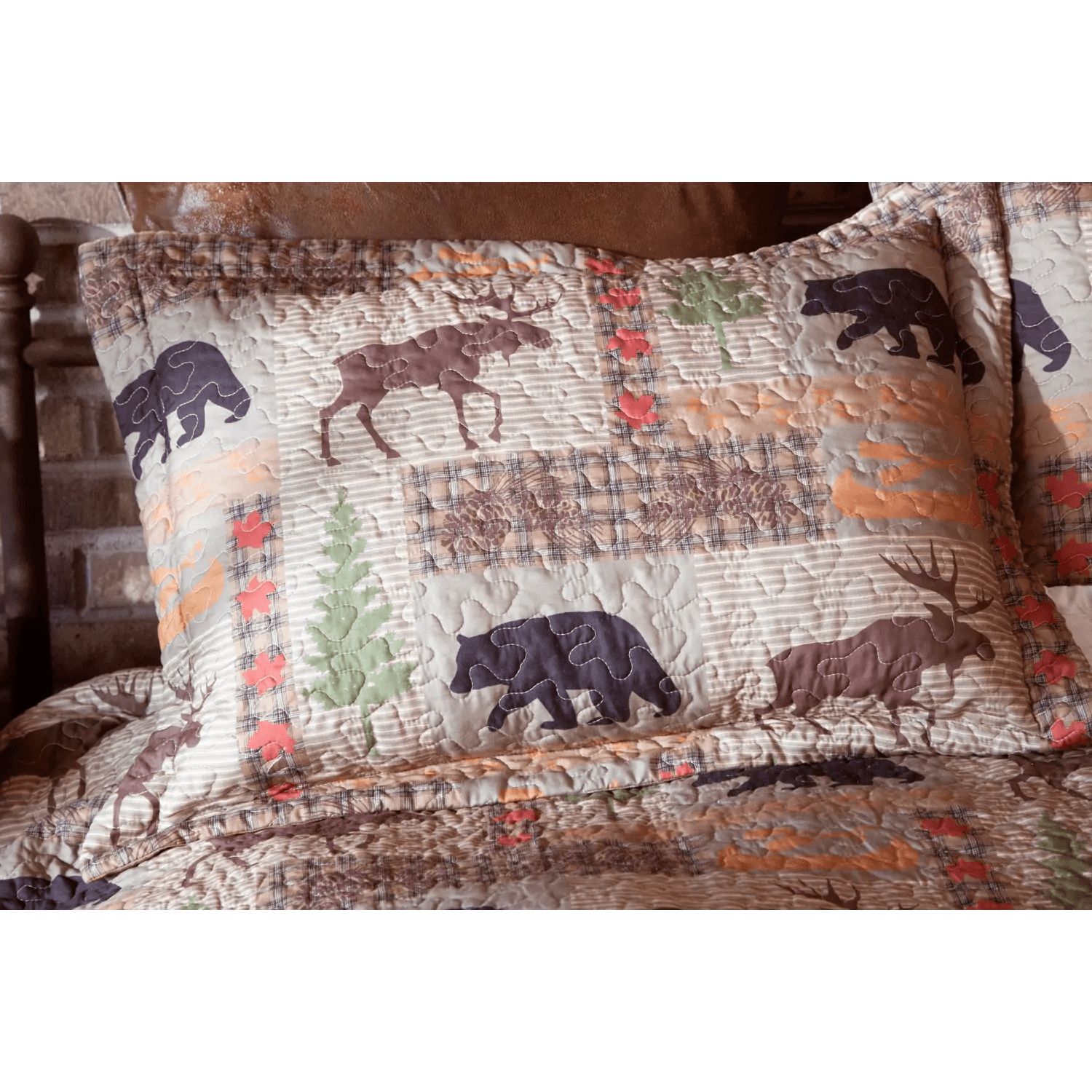 A lightweight king sized quilt set in a log cabin design featuring earthy shades mixed with a touch of green and black. As this is made from microfibre, it is lighter than our other quilts and can be used over a top sheet in warmer months or over a duvet in winter in cooler rooms.