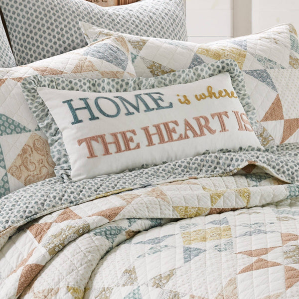 A pretty decorative cushion that coordinates with our Lottie bedding collection. Message reads HOME IS...