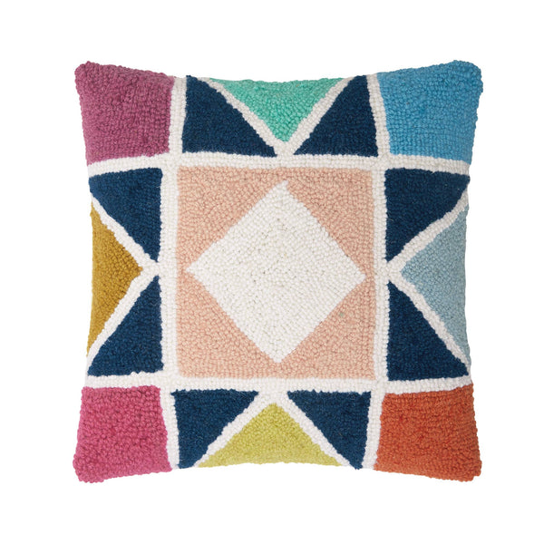 A fun Americana themed hooked cushion with a Stars and Stripes design in red, white...