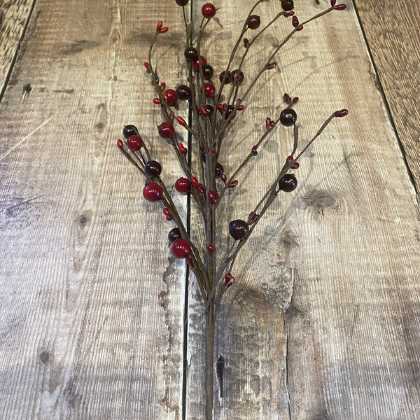 A New England style garland with a mix of bright red and burgundy pip berries...