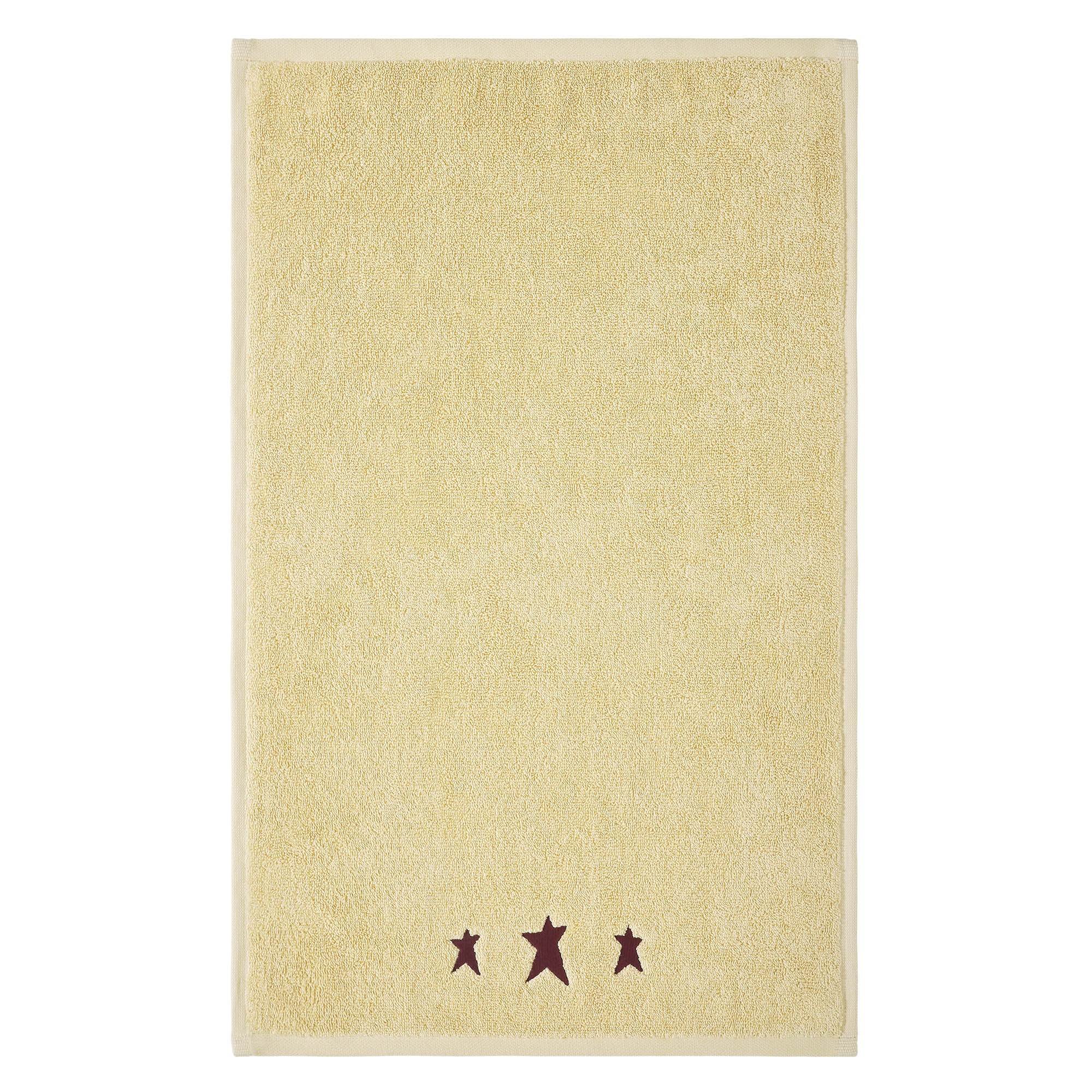 Enhance your bathroom with the rustic charm of the cream hand towel with burgundy primitive stars. Crafted from soft and absorbent cotton terrycloth, this towel provides both comfort and functionality for everyday use. The gentle cream hue provides a soothing, neutral backdrop, while the rich burgundy embroidered stars at the bottom bring a striking, primitive charm to your bathroom decor.