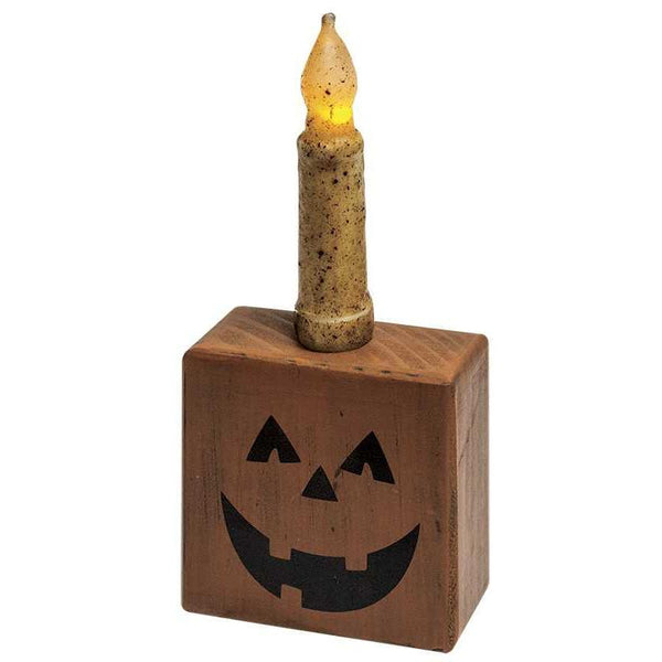 The Grungy Jack O Lantern Flicker Timer Taper is a unique flameless candle made with...