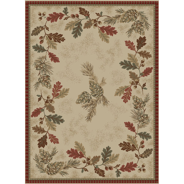 Lodge style rug rug to a touch of American log cabin decor. In earthy browns and tan along with greens...