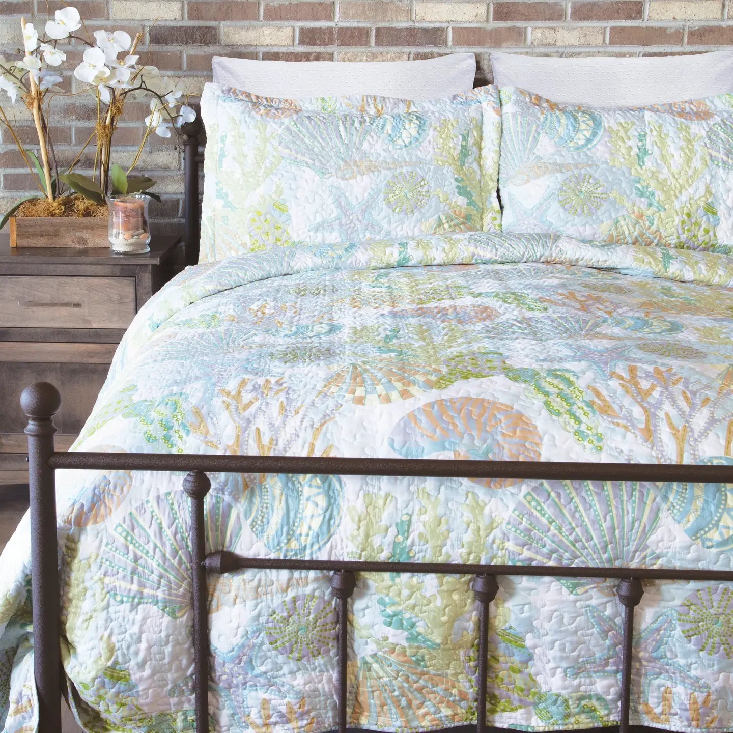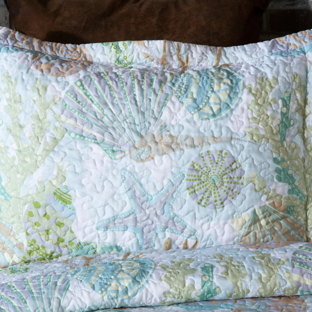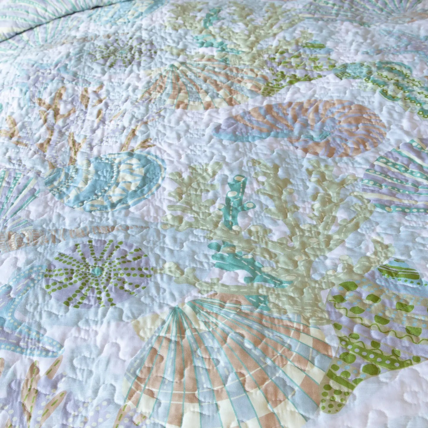 Soothing and stylish, the Coastal Reef Quilt Set brings a sense of serenity to your home. The intricate embroidery of the carefully crafted quilt and matching shams creates a luxurious look, while the soft, breathable lightweight fabric ensures a comfortable night's sleep. Feel refined as you drift off and indulge in one-of-a-kind coastal-inspired style.