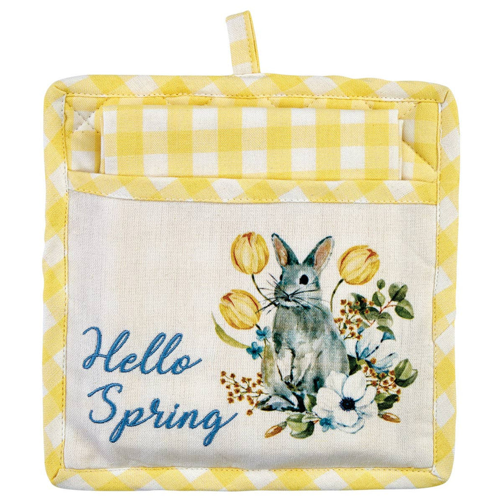A pretty set that includes a potholder with a pocket along with a yellow check tea towel. Makes a lovely host/hostess gift for Easter. Can easily be incorporated into many home decor styles, including farmhouse, country, contemporary and traditional.
