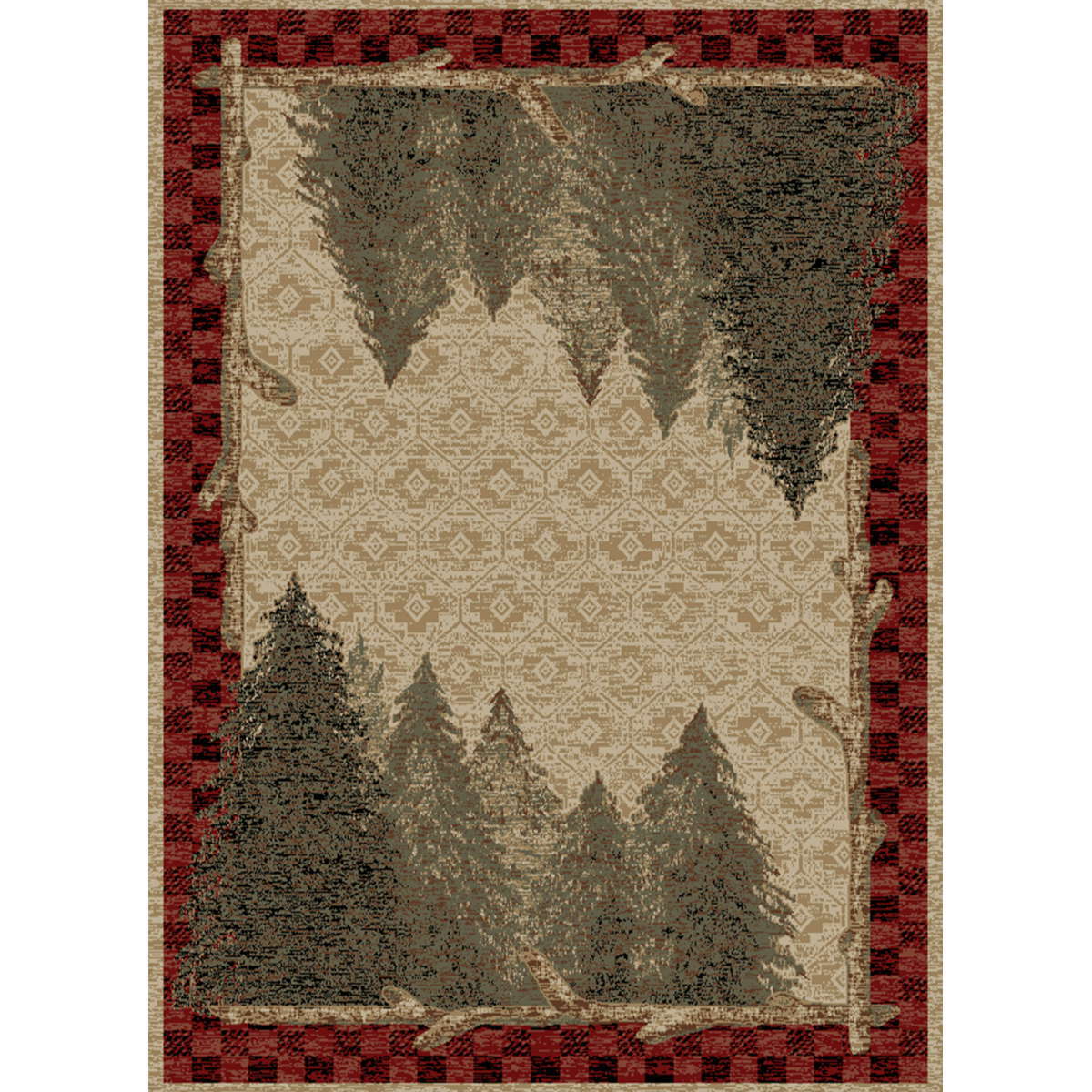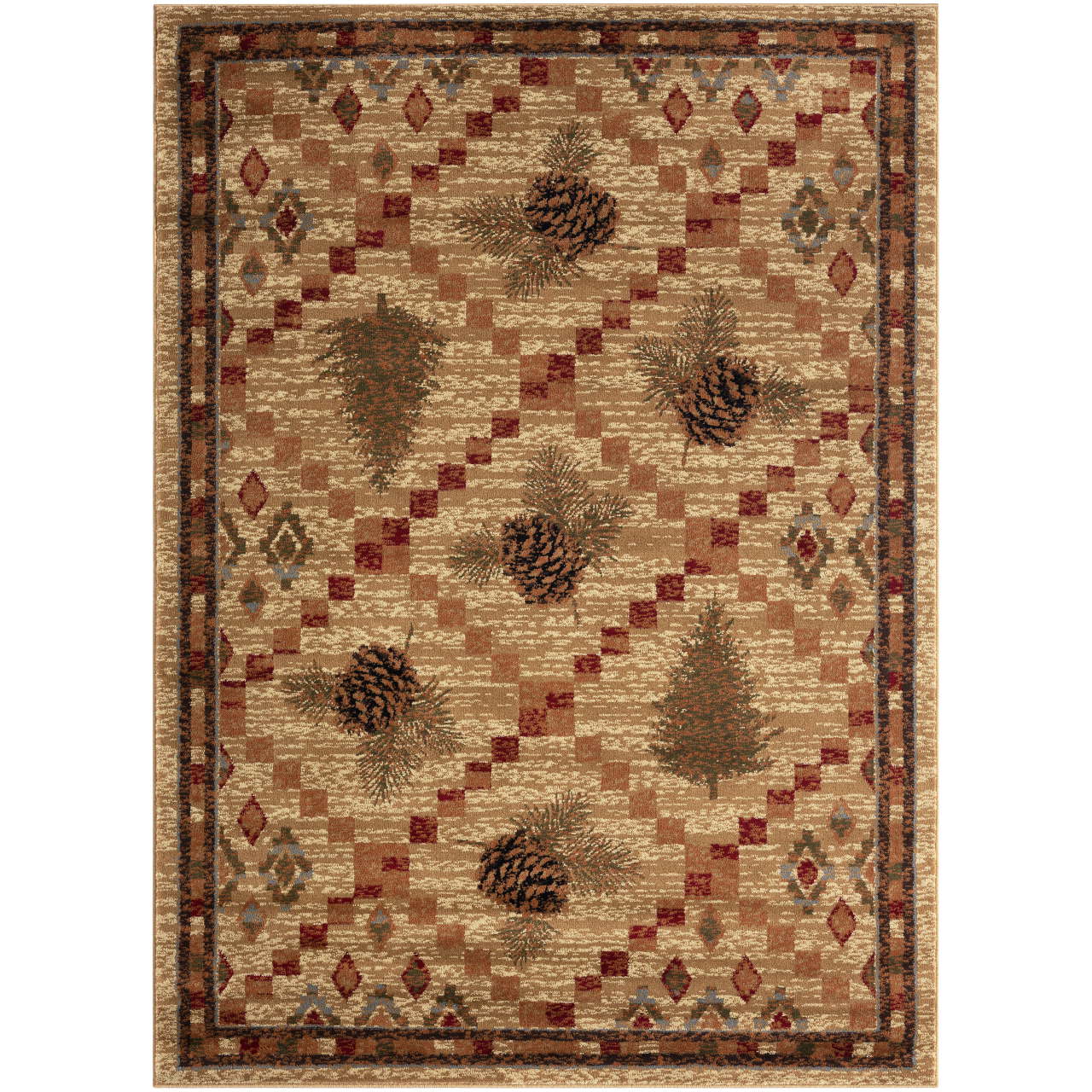 Lodge style rug rug to a touch of American log cabin decor. In earthy browns and tan along with greens...