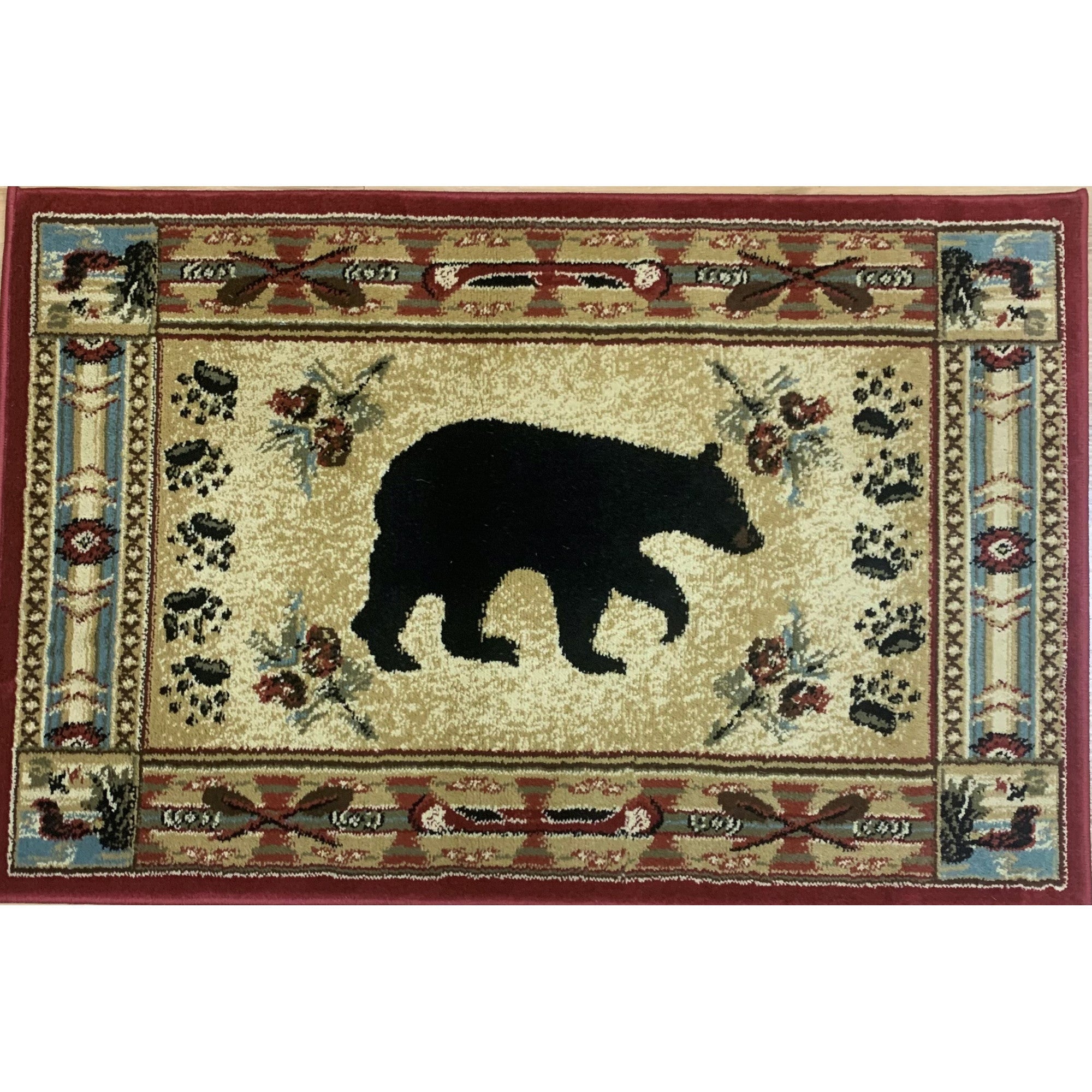 Our collection of American Log Cabin style rugs comes in several different sizes and designs. This one has a bear in the centre and other animals and woodland designs in the corners.