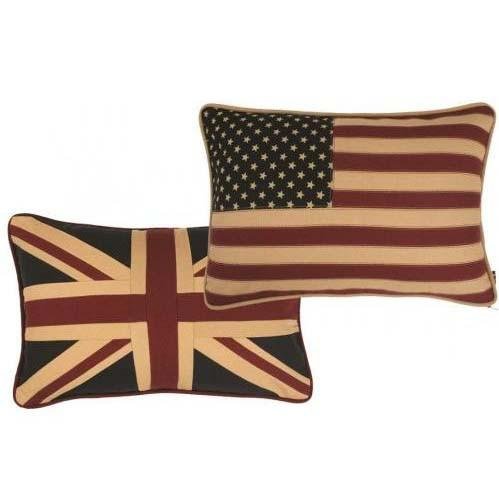 Our popular vintage style Union Jack and stars and stripes designs are now available as a 2 sided cushion. Colours are a deep navy, wine red and tan. Features a vintage style American flag on one side and Union Jack design on the other. Makes a great birthday or wedding gift.