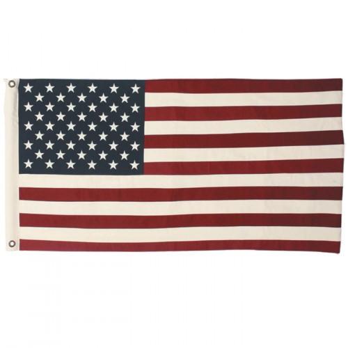 High quality American flag with embroidered stars on a navy backround and stripes of heavy weave barn red and white cotton fabric.