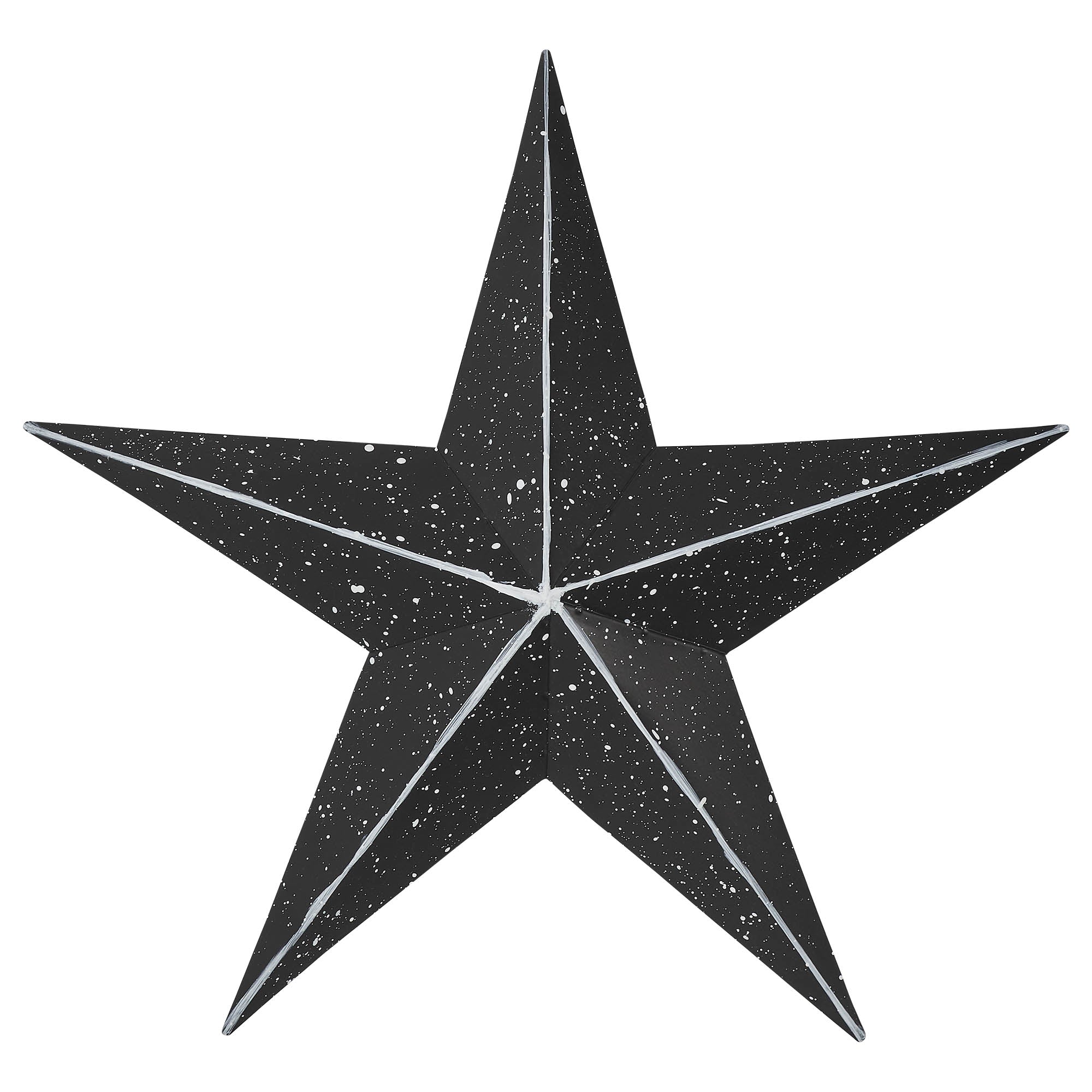 A decorative wall hanging featuring a faceted five-point star crafted from durable metal, finished in a charcoal black colour with a speckled finish. A convenient hanging clip on the back ensures easy placement, making it the perfect accent piece everyday farmhouse-inspired decor.