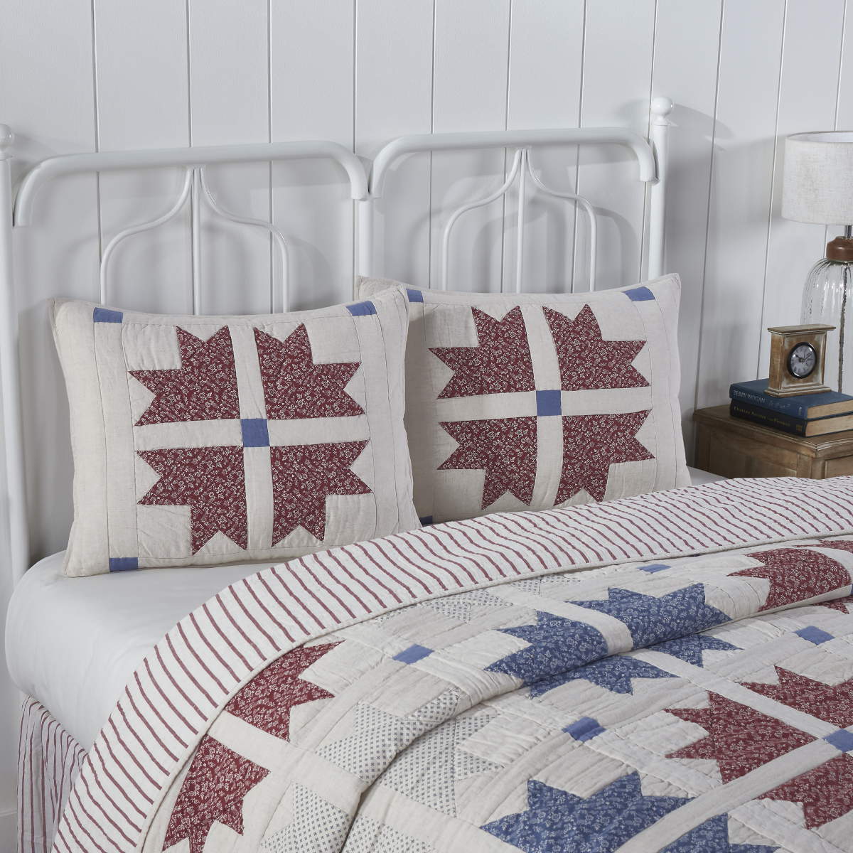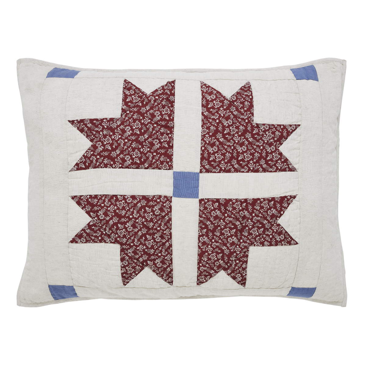 Accent your bed with the Celebration Pillow Sham crafted from high-quality cotton featuring a star patchwork in dusty blue, deep red, and soft cream. Includes button closures for easy access.