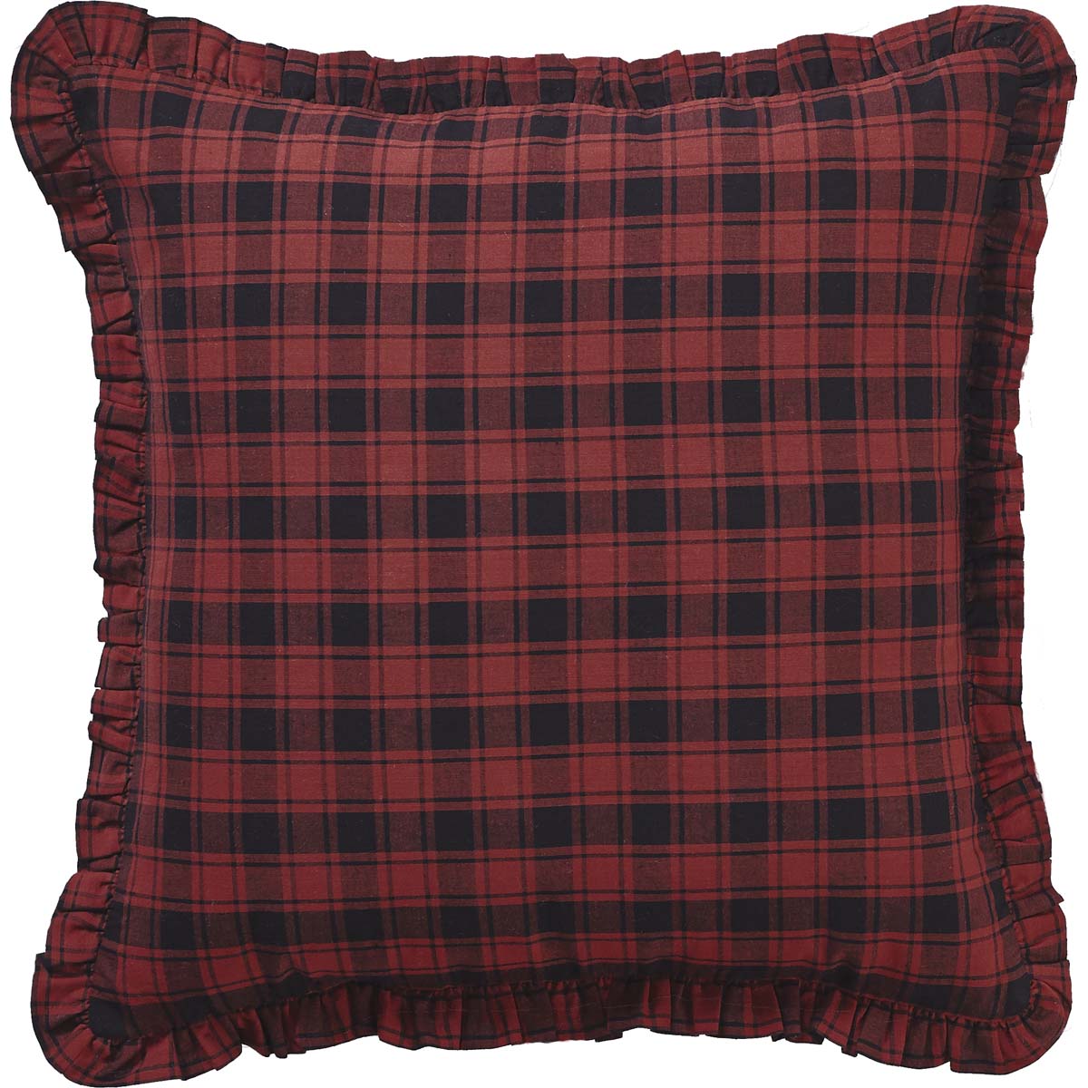 Bring a little bit of the wilderness inside with a rustic design and bold, adventurous tones of chilli pepper red and black in a traditional buffalo plaid pattern. The Cumberland Plaid Pillow measures 18x18 inches and features a solid red and black plaid throughout with a deeply ruffled edging to soften the look. Reverses to matching plaid with tie-style closures for easy cleaning. The throw pillow coordinates with the Cumberland Collection for rustic country style throughout your whole home,