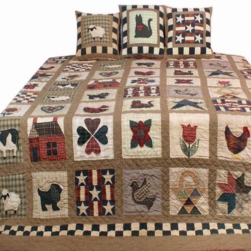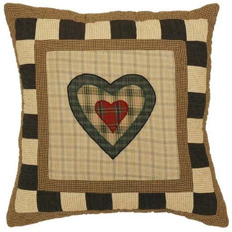 Heart in heart design cushion that is part of our range of appliqué patchwork cushions which co-ordinate with our Folk Art Sampler Quilt. Fabrics can vary slightly with each piece.