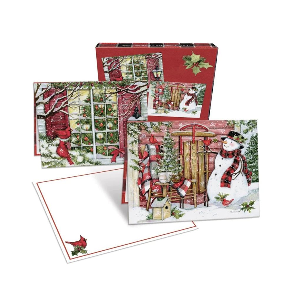 Celebrate the holidays with assorted Christmas cards from Susan Winget. Each box includes 18 cards & 19 fully designed envelopes. There are 2 unique designs per box with 9 of each design. Cards are made from elegant linen-embossed paper stock.