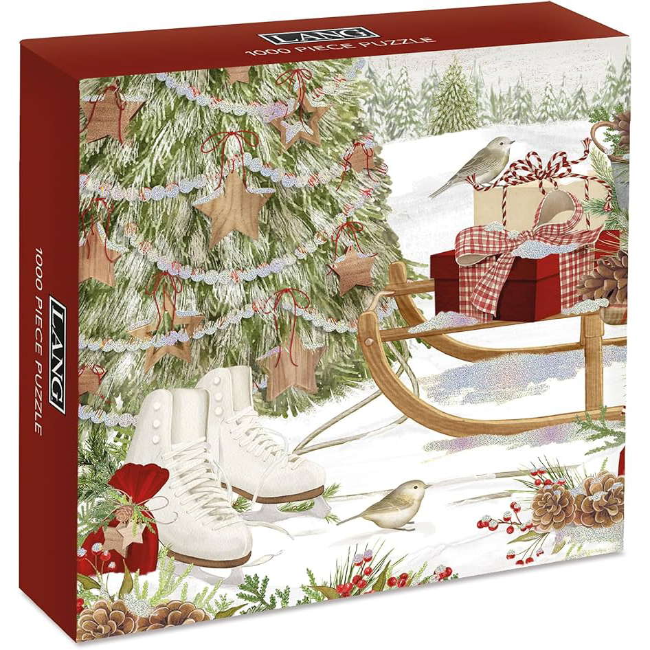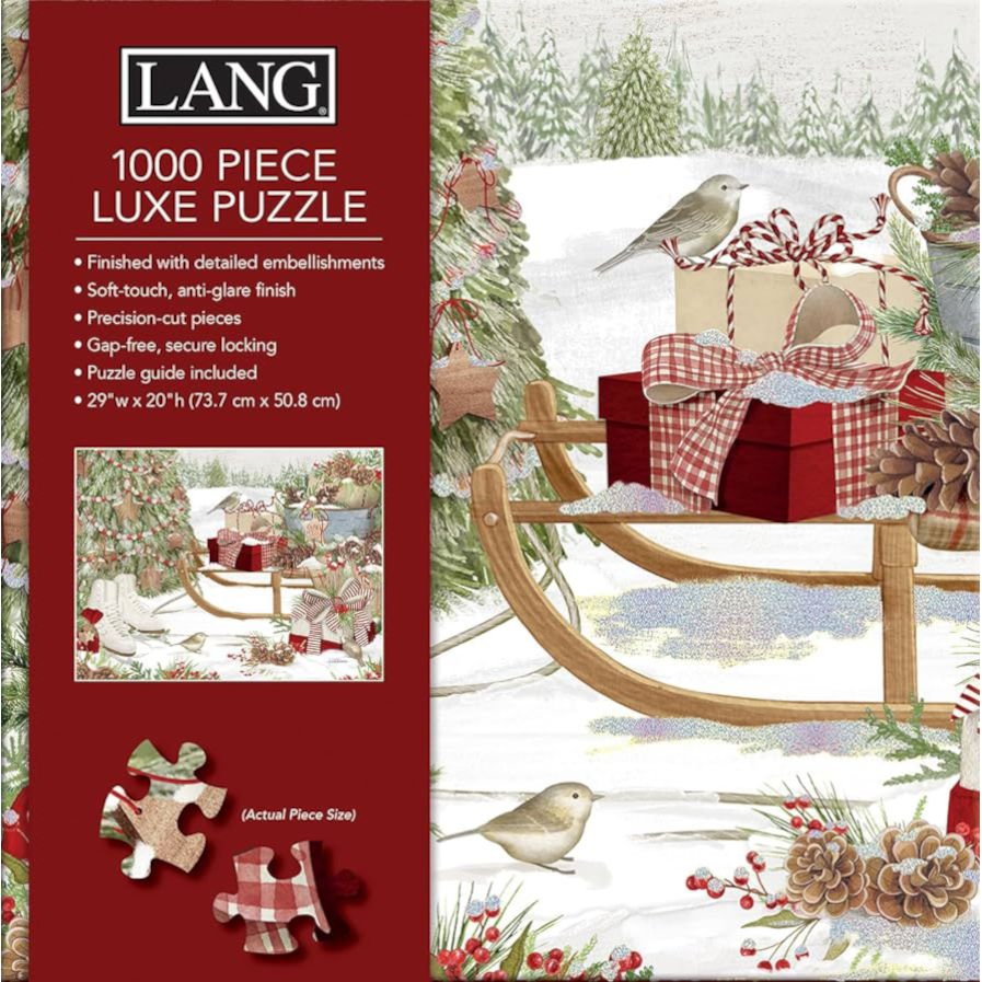LANG Luxe jigsaw puzzles are a fun and challenging activity to do with friends and family. Tackle the "Snow and Cocoa" 1000-Piece Puzzle, featuring artwork by EttaVee. Each puzzle piece is finished with an elegant soft-touch paper and is enhanced with glitter or foil embellishments for greater detail. If you get stumped, an art guide print is included to help you out.