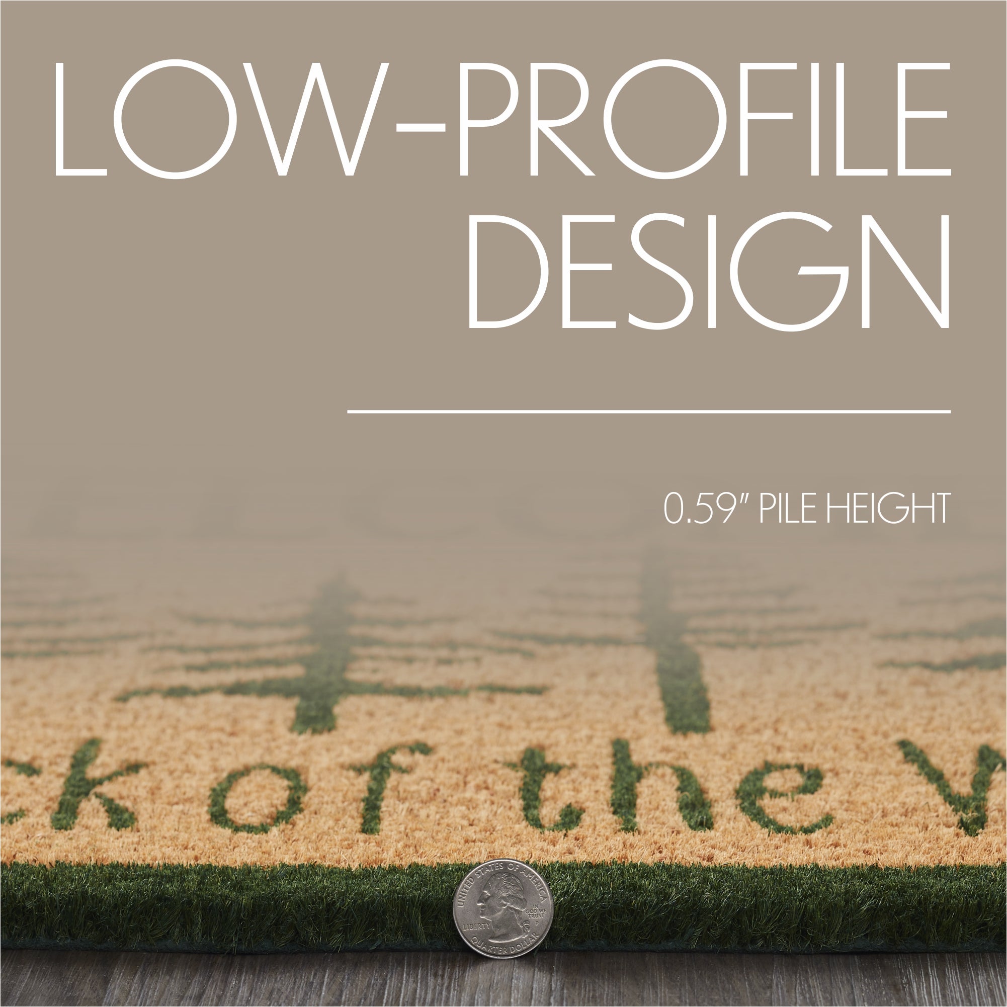 Crafted from durable coir, this rug is designed to effectively trap dirt and debris, helping to keep your entryway clean while providing a welcoming accent. The rectangular shape fits perfectly at your doorstep, while the non-slip PVC backing ensures stability, keeping the mat securely in place in high-traffic areas. Its slim profile effortlessly fits beneath most doors, and the eco-friendly coir material aligns with modern sustainability values.