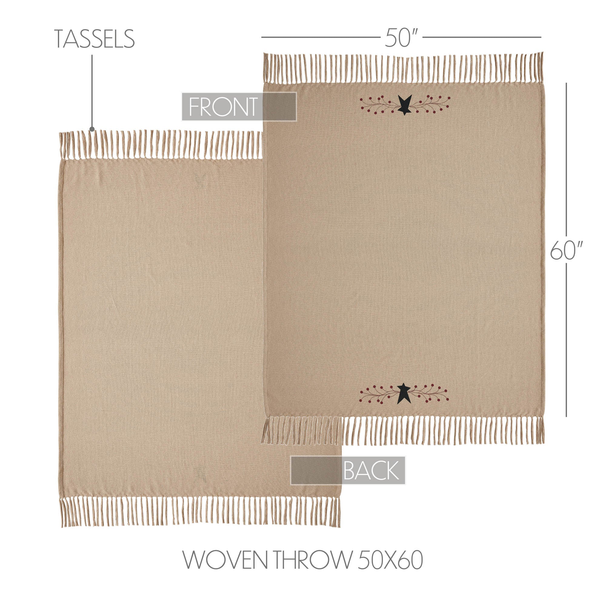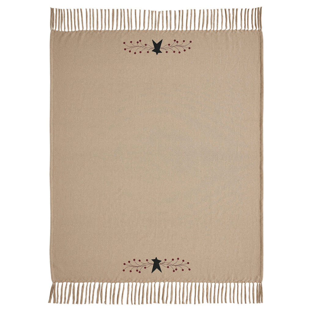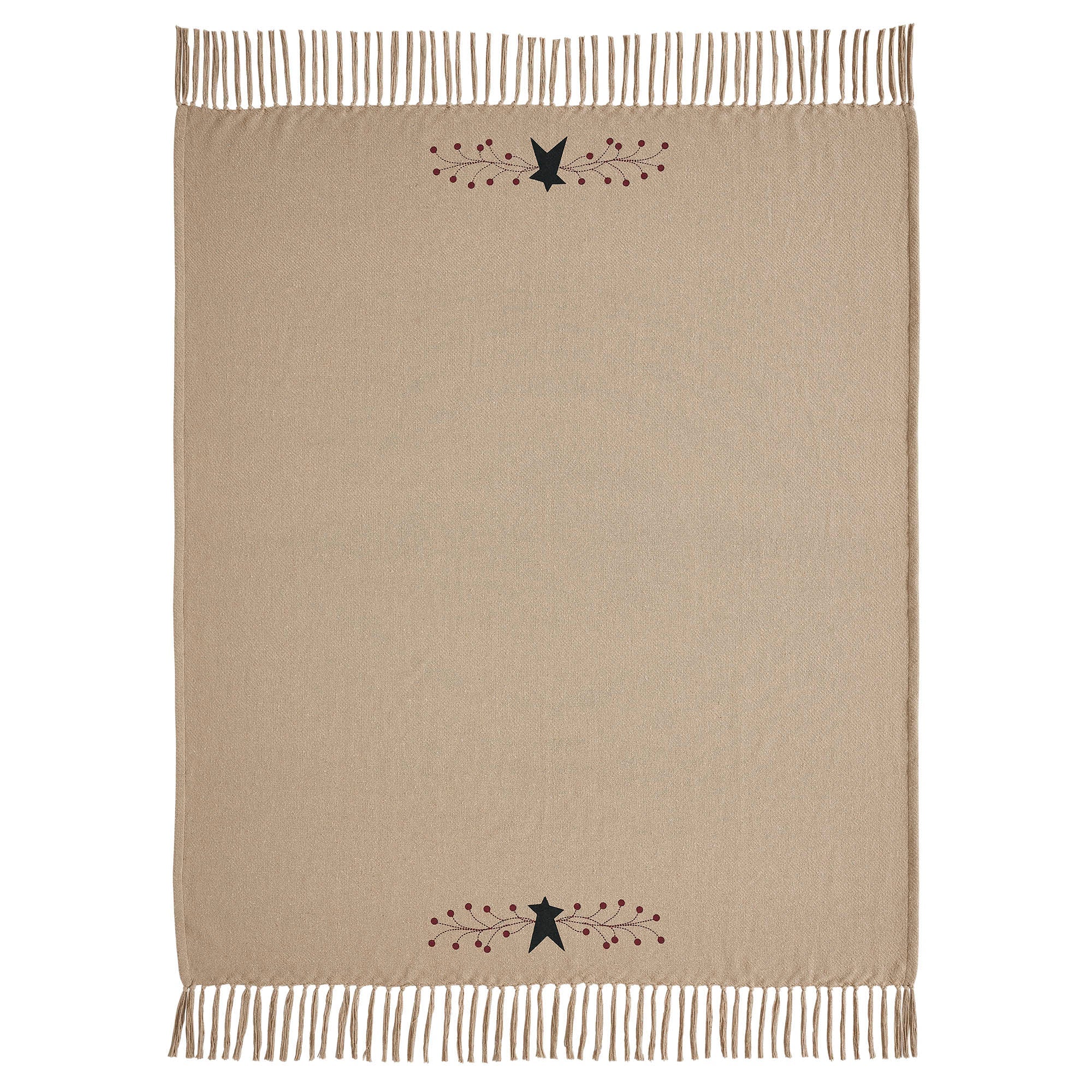 An American farmhouse style lightweight throw made from recycled cotton featuring a primitive star design. The natural, black and burgundy colour and textured fabric combine to create a cosy, inviting atmosphere in your home. With its primitive star pattern, this woven throw adds a touch of country charm to your space. The rustic aesthetic and textured fabric make it an ideal addition to your home decor, whether draped on your sofa or used as an extra layer of warmth in the bedroom. The natural colour complements a variety of interior styles, allowing you to effortlessly elevate your living space.