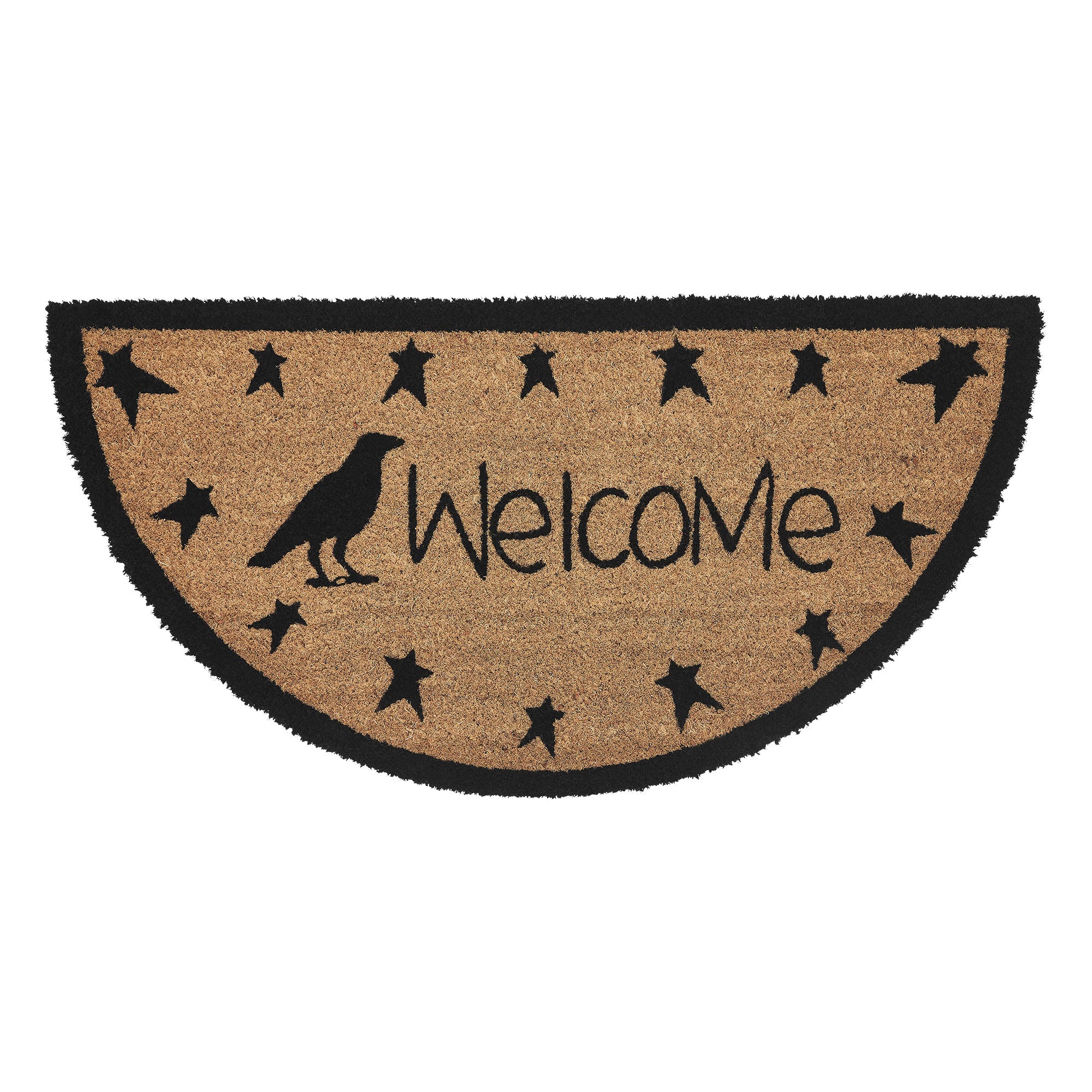 Crafted from durable coir, this rug is ideal for trapping dirt while offering a decorative accent to your home. The half-circle shape fits snugly by your doorway, and the non-slip PVC backing ensures stability, keeping the rug securely in place even in high-traffic areas. The primitive raven and stars design complements rustic and farmhouse decor, making it the perfect addition to any home that embraces country living.