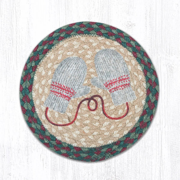 Hand Stencilled jute trivet with a red plaid bear in the centre. Makes a nice...