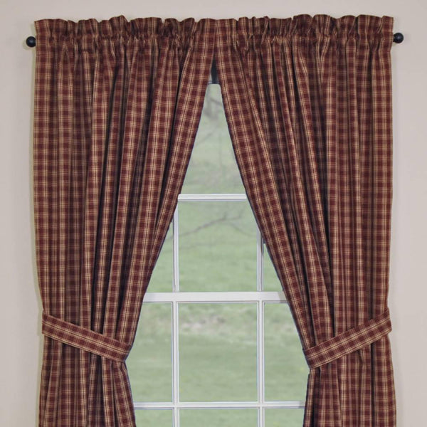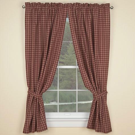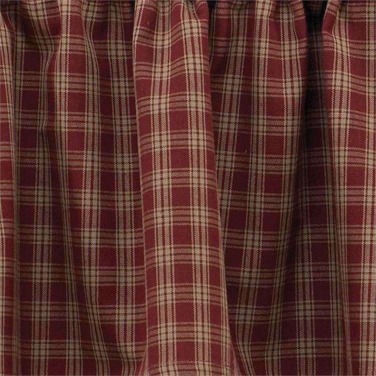 The Sturbridge Point window valance uses two layers of fabrics, a wine and tan ticking stripe and...