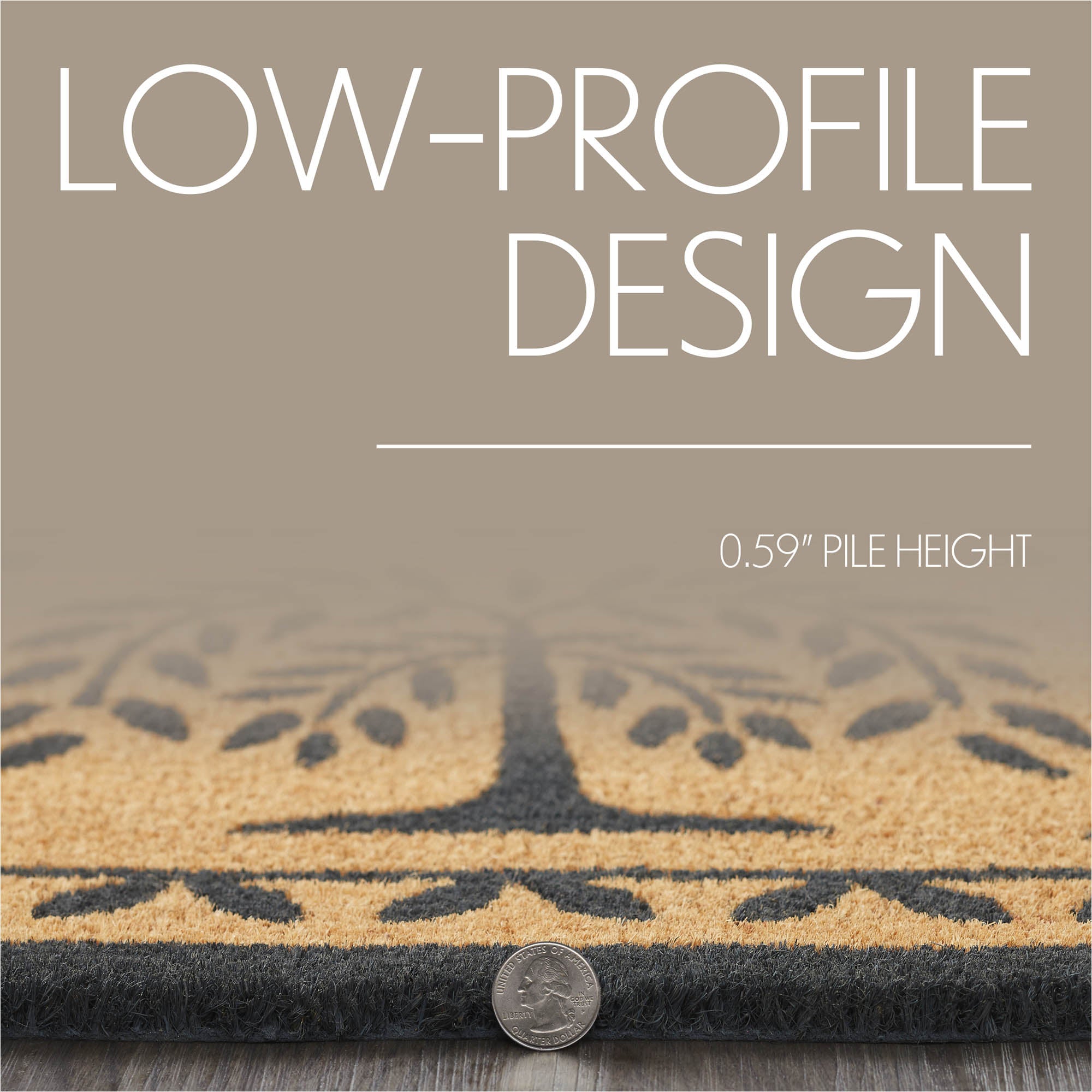 Crafted from durable coir, this rug is designed to trap dirt and debris effectively, keeping your entryway clean while adding a welcoming aesthetic. The non-slip PVC backing ensures stability and prevents slipping, making it perfect for high-traffic areas like doorways. The stenciled willow tree design brings a vintage, nature-inspired element that enhances the rustic charm of your home.